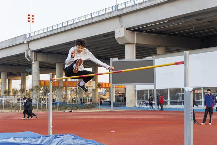 “手打直,枪头稳住,手腕稳住,别掉下来!”近日,在宿州市国家体育后备人才基地的标枪训练区,教练时近远的声音格外清晰。满弓、转腰、上步支撑、出手,运动员一气呵成,标枪在空中划出有力的弧线。不远处,竞走运动员在跑道上不断调整发力姿势,中长跑队员正进行高强度间歇训练,跳高运动员反复练习冲刺起跳……不同场地、不同项目,市田径队的运动员们斗志昂扬,在寒冬中以火热的训练状态备战即将到来的安徽省第十六届运动会(以下简称“省十六运”)。