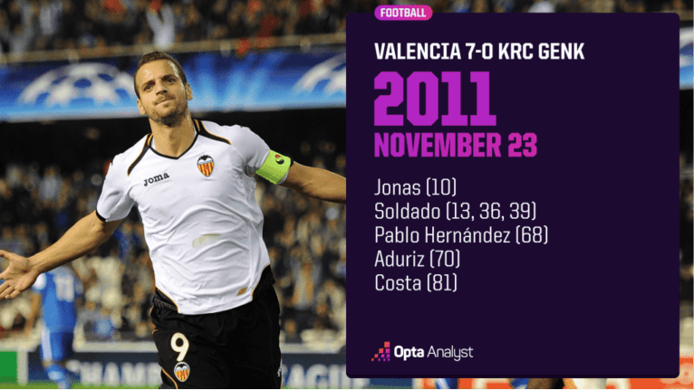 •瓦伦西亚 7 - 0 亨克 —— 2011年11月23日