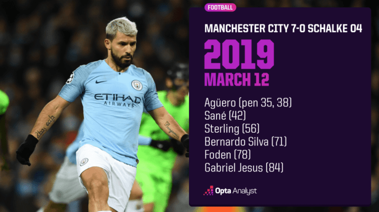 曼城 7 - 0 沙尔克04 —— 2019年3月12日