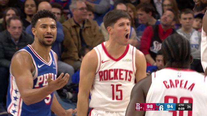 最后一节开始后76人队连拿4分扩大优势,可这之后他们进攻哑火,谢泼德再次开火命中2个三分球,他率队打出12-0的小高潮,第四节进行了4分20秒时火箭队以100-94反超。恩比德突破打破球队得分荒,杜兰特中投得分,谢泼德又中三分,火箭队领先9分。恩比德还击三分,史密斯篮下打进,第四节还有4分55秒时火箭队以107-99领先。76人队连追4分迫近,伊森三分回应,马克西突破打3分成功,76人队追至106-110。