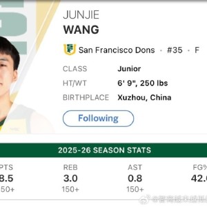 3月12日讯 今天,欧洲篮球及选秀专家王健晒出一项中国球员在NCAA的数据统计。据统计,王俊杰大三赛季场均8.5分3板,...