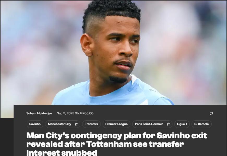 萨维尼奥上赛季代表曼城出战了48场各项比赛,这名新星的合同还有3年到期,热刺今夏曾希望签下他,但曼城将其视为非卖品。