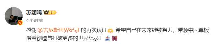 苏翊鸣在社交媒体上回应